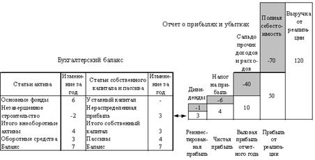 Рисунок 1.2.3. Схема взаимосвязи между балансом и отчетом о прибылях и убытках