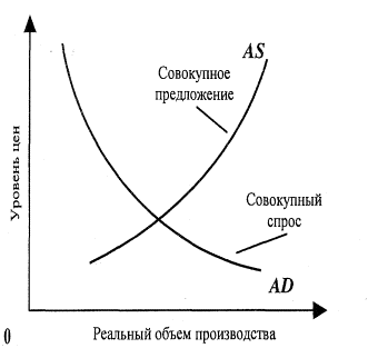 Пересечение кривых совокупного спроса и совокупного предложения дает точку общего экономического равновесия