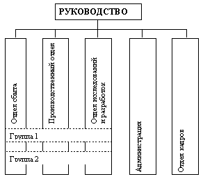 никаких промежуточных уровней между подразделением и высшим руководством. Это дает возможность создания короткой линии связи;