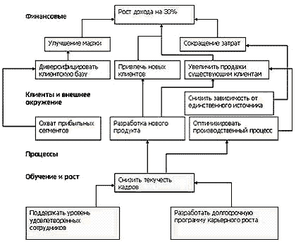 набор целей отображает стратегию. Каплан и Нортон рассматривают следующие