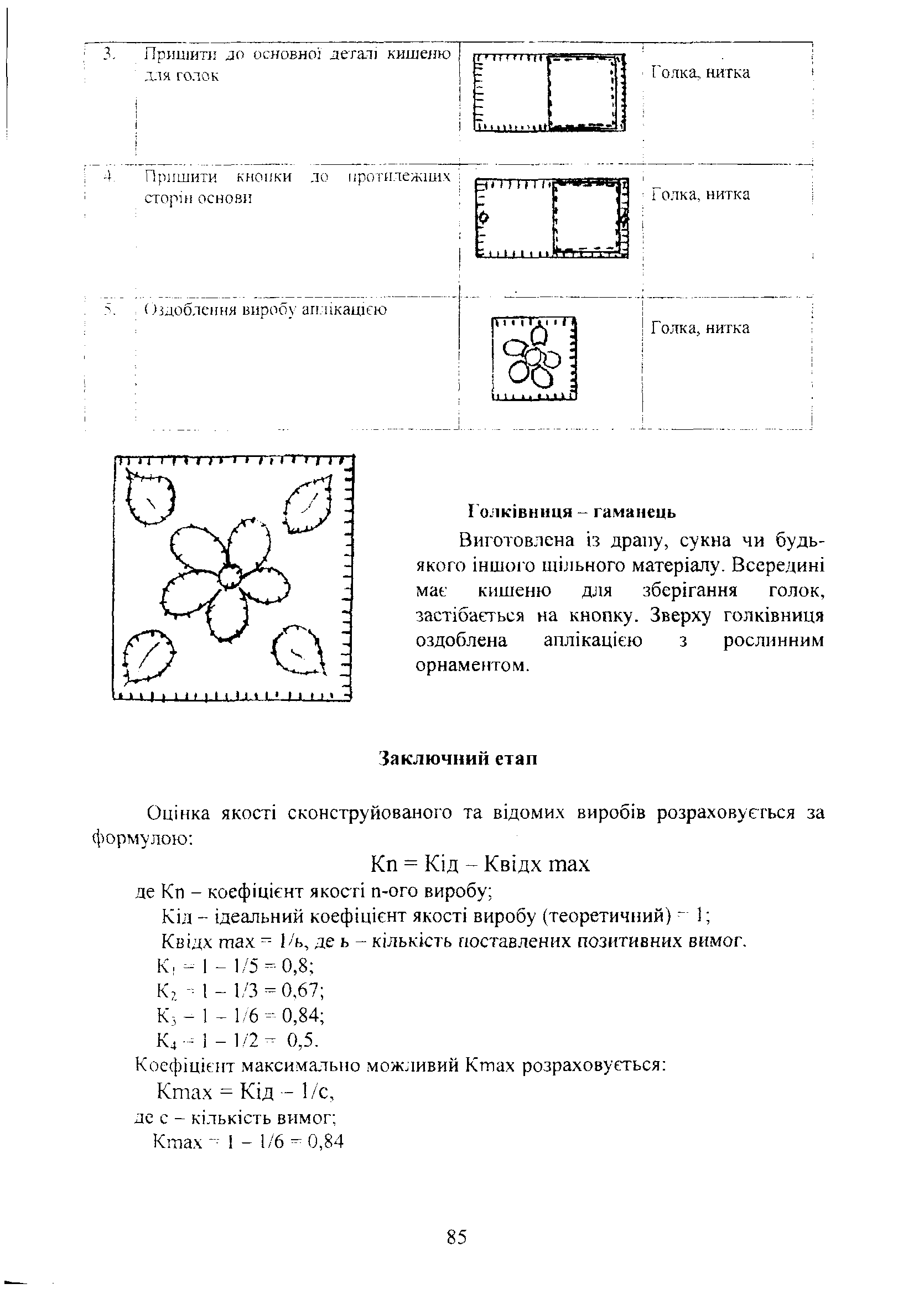 | 5 | Оздоблення виробу аплікацією | ![]() | Голка, нитки |