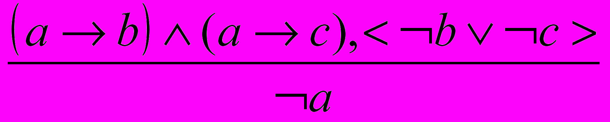 | Формула ЧУС где: | (a → b) (b → c) a → c а – основание (1) 1-й условной посылки (2) заключения b – следствие (1) 1-й условной посылки (2) основание 2-й условной посылки с – следствие (1) 2-й условной посылки (2) следствия 1-й условной посылки (3) заключения |