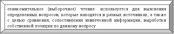Определите, в каких ситуациях Вы используете просмотровое чтение, в каких – ознакомительное и когда – изучающее. Чем при этом обусловлен выбор того или иного вида чтения?