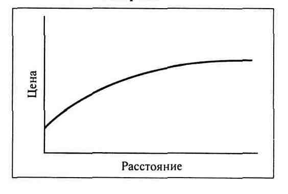 Как видно из графика, величина издержек никогда не бывает равно нулю, так как вне зависимости от расстояния между пунктами перевозки всегда существуют постоянные расходы на прием грузов и их доставку получателям.