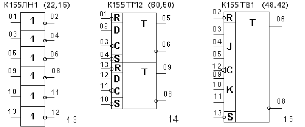 Предлагаемый перечень элементов логики серии ТТЛ К155 для курсового проектирования.