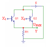 подключаются эмиттерные повторители (чтобы транзистор не заходил в режим насыщения), которые обеспечивают сдвиг выходных напряжений.Y=U1ВЫХ = E – URk – UБЭп ≈ E - UБЭп