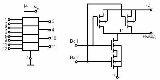 Принципиальная схема каждого из элементов 2И-НЕ.