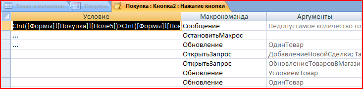 На нажатие кнопки «Выбрать товар» назначен специально разработанный макрос (рис.2.6.), состоящий из нескольких микрокоманд.