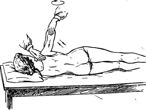 При полном отсутствии движений (плегия) с первых дней начинаются занятия пассивной гимнастикой. Пассивные движения проводятся методистом лечебной гимнастики (а затем несколько раз (2 – 4) в день повторяются лицом, постоянно ухаживающим за больным: родственником или сиделкой) в полном объеме, изолированно в каждом суставе. Темп движений постепенно увеличивается, число их для каждого сустава может составлять от 5 до 10 и более раз. Одновременно следует начинать легкий массаж здоровых и паретичных конечностей: на руке массаж начинают с плеча, на ноге – с бедра и ягодиц (рис.1, 2)