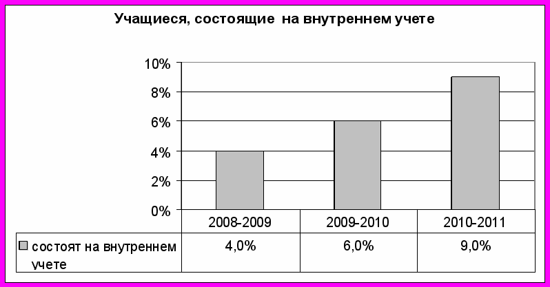| состоят на внутреннем учете | 4,0% | 6,0% | 9,0% |