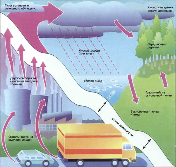 Рис. 24. Кислотные осадки (по М. Скотту, 1995)