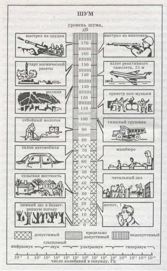 Рис. 18. Шкала силы звука (в дБ) (по В.И. Коробкину, Л.В. Передельскому, 2007)
