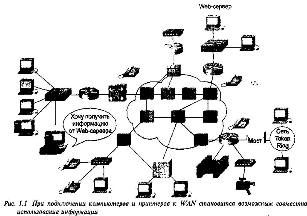 Рисунок 0 1.1. При подключении компьютеров и принтеров к WAN становится возможным совместное использование информации