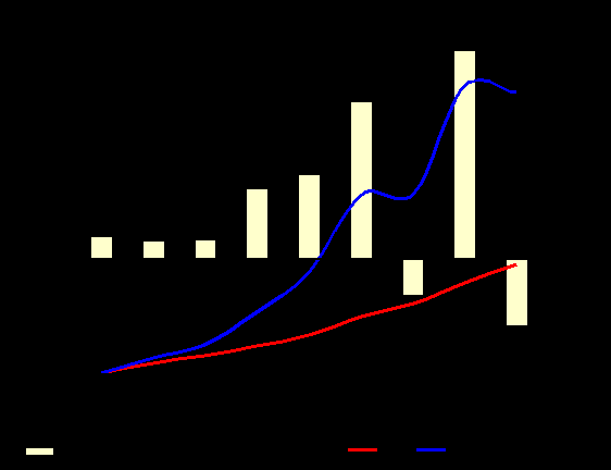 Как и в ряде рассмотренных выше случаев, арендная плата, занимающая значительное место в структуре расходов населения на жилищные услуги, растёт поступательно и медленными темпами, около 1-3% ежегодно. Услуги на ремонт и содержание жилья в 2007 – 2009 г. дорожали несколько быстрее – на 4-5% ежегодно, но в среднем за десятилетие темпы роста их стоимости относительно других услуг оставались весьма умеренными.