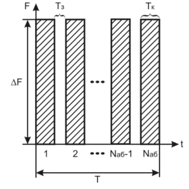 Рис. 2.10. Расширение спектра скачкообразной перестройкой частоты