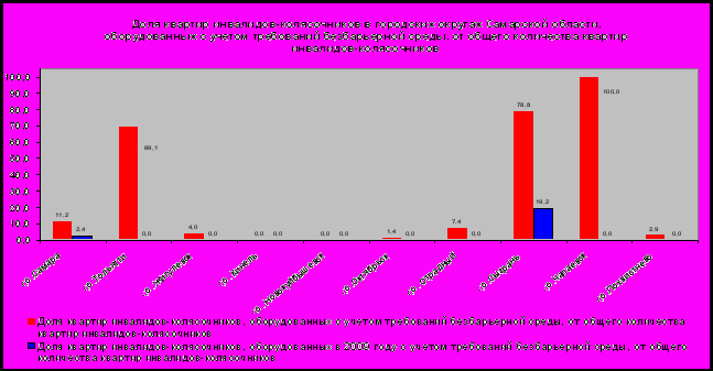 Доля квартир инвалидов-колясочников в муниципальном образовании Самарской области, оборудованных в 2009 году с учетом требований безбарьерной среды.