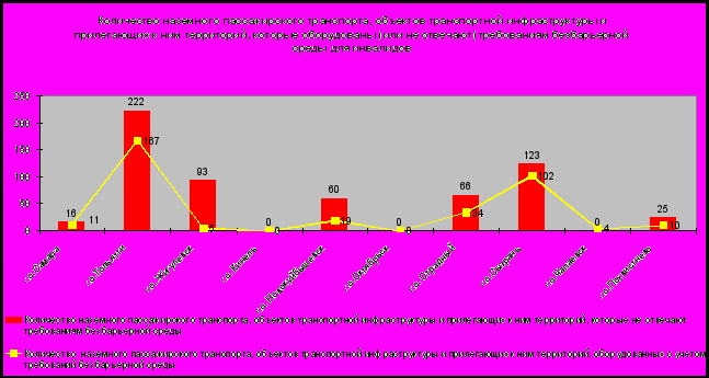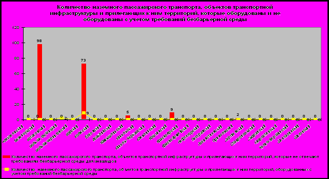 Количество наземного пассажирского транспорта, объектов транспортной инфраструктуры и прилегающих к ним территорий, которые не оборудованы с учетом требований безбарьерной среды.