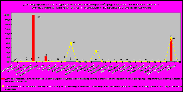 Доля наземного пассажирского транспорта, объектов транспортной инфраструктуры и прилегающих к ним территорий, оборудование которых с учетом требований безбарьерной среды планируется осуществить в 2010 году.