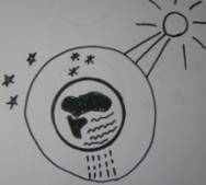 Земля – планета Солнечной системы. Это огромный твердый шар. На поверхности этого шара есть суша и вода. Землю окружает воздушная оболочка – атмосфера. Она защищает планету от слишком горячих лучей Солнца, определяет погоду на поверхности Земли. От состояния атмосферы зависит, будет ли туман, облачность (облака – это большое скопление капелек воды), дождь и т.д.