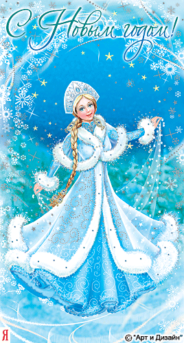 усский Дед Мороз. Вы его хорошо знаете – каждый год он поздравляет Вас с Новым годом и дарит подарки. У него в руках хрустальный посох с головой быка - символ плодородия и счастья. Он ездит в расписных санях, запряженных тройкой белоснежных коней. Снегурочка – это внучка Деда Мороза, которую слепили из снега.А