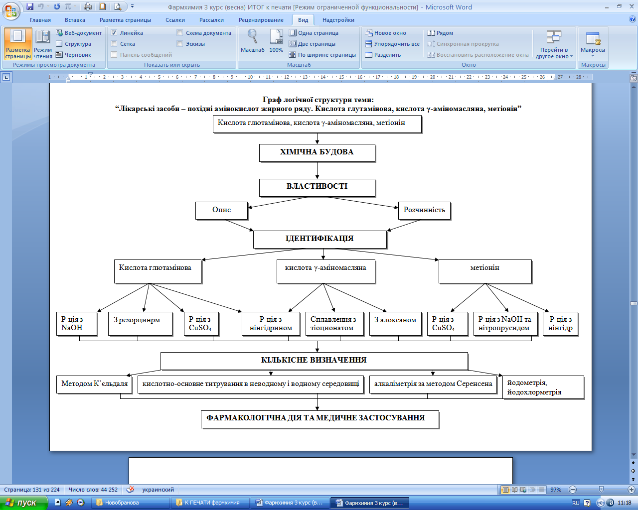 4. Граф логічної структури теми: “ Лікарські речовини похідні амінокислот аліфатичного ряду. Кислота глютамінова, кислота γ-аміномасляна, метіонін.”