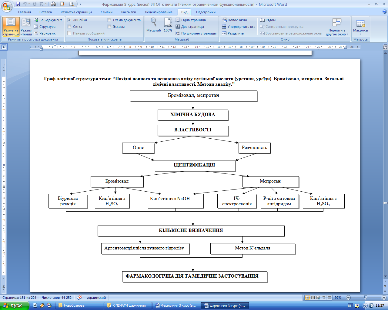 4. Граф логічної структури теми: “Аналіз лікарських речовин-похідних повного та неповного аміду вугільної кислоти. Бромізовал, мепротан.”