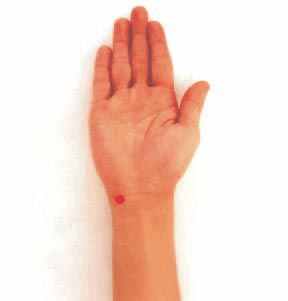 ![]() | Ладонь обращена кверху - лучевая сторона по линии запястья. Точка расположена во впадине, на конце поперечной кожной складки лучезапястного сустава, у лучевого края лучевой артерии; проецируется на нижний край квадратного проматора; здесь проходит лучевая артерия, вена, атеральный кожный нерв предплечья, поверхностная ветвь лучевого нерва, ладонная ветвь срединного нерва |