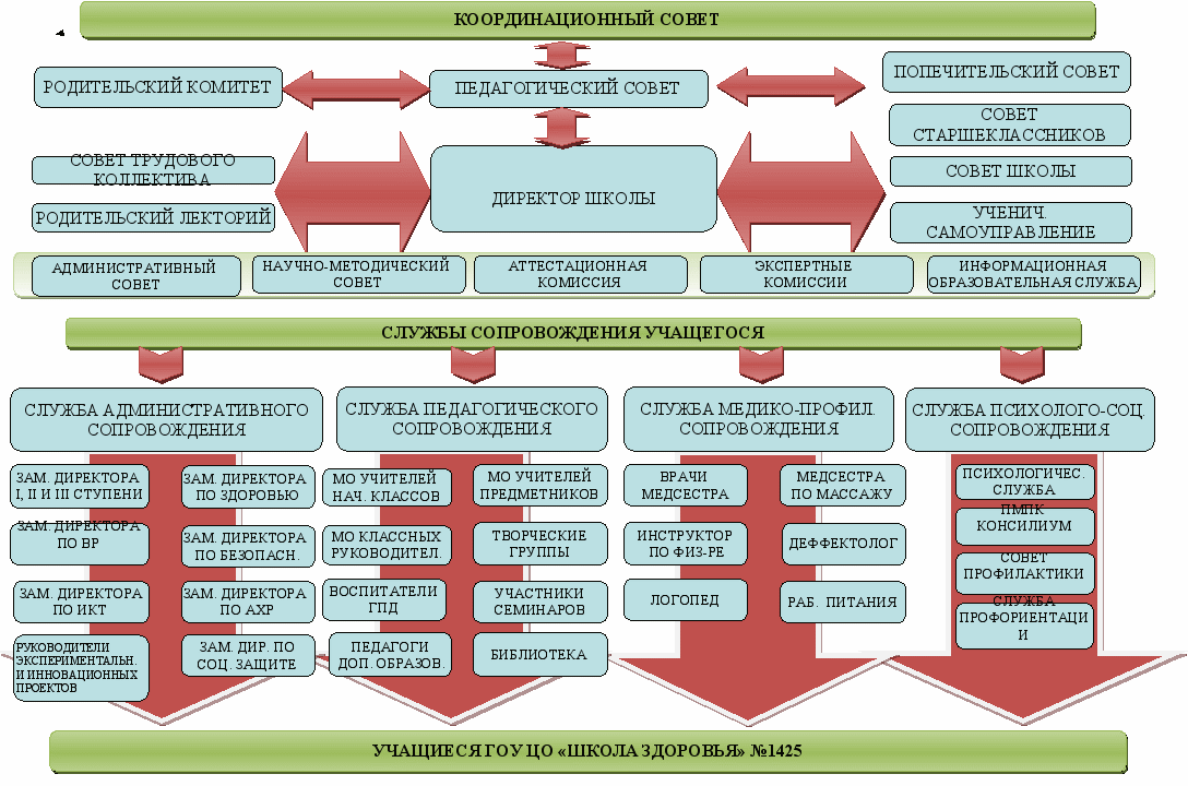 4. Верхний уровень совет координации, который состоит из учащихся, педагогов и родителей.