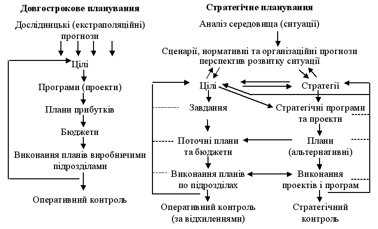Рис.1.5. Порівняльна характеристика довгострокового та стратегічного планування