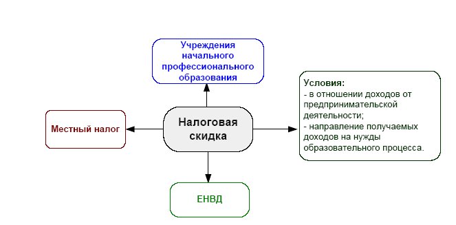 Рис. 13 – Стимулирующие механизмы льготного налогообложения образовательных учреждений на основе налоговой скидки в отношении единого налога на вмененный доход