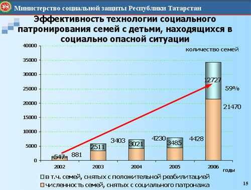 Сегодня на патронаже стоит 4,5 тыс. семей, в которых проживает 9,5 тыс. несовершеннолетних. Основанием постановки семьи на социальный патронаж в учреждениях социального обслуживания семьи и детей является постановление муниципальной Комиссии по делам несовершеннолетних и защите их прав.