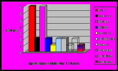Чтобы более отчётливо представить цветовую насыщенность повести, определить идейное значение каждого цвета, я провёл исследование каждой цветовой детали в повести. Получились, на мой взгляд, очень интересные результаты, которые я обработал и представил с помощью компьютерных технологий.
