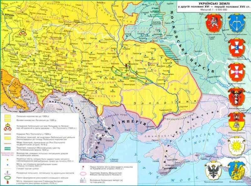 126. Під владою яких держав знаходилися українські землі напередодні Визвольної війни:
