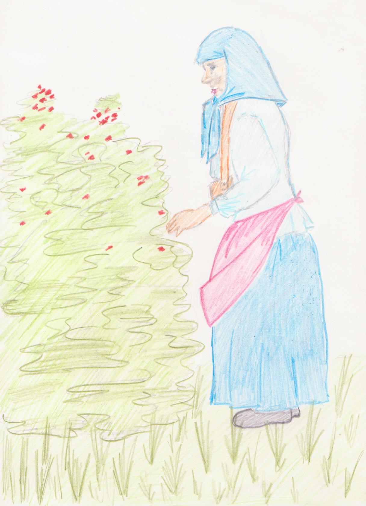 «Я прежде проворная была! Ох, проворна! По два ведра малины в день насобирывала, а черницы либо брусники, да с совком, и поболе черпывала. Свету белого не видать мне, если вру», — уверяла бабка поражённых ребят. И — раз-раз, незаметно так, под говорок, обирала малину с кустов. Дело у неё спорилось, и удобная старинная посудина быстро наполнялась.