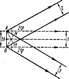 где т = 1, 2, 3, и DE = BF = hm. Тогда радиус для максимума m-го порядка будет АЕ = AF = ρт.