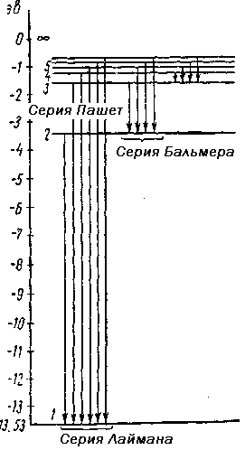 Эта группа линий называется серией Лаймена. В 1908 г. Пашен открыл, что данная закономерность выполняется также для группы линий, расположенных в инфракрасной части спектра атома водорода: