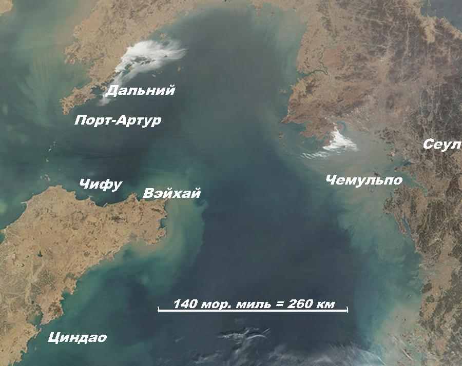Желтое море. В 15.35 Соединённый флот подошел к о.Сингль. В это время с юга от острова показался, какой-то пароход, следующий на юг. Вице-адмирал Камимура приказал крейсеру «Адзума» догнать его. При этом выяснилось, что это идёт в Нагасаки срочным пассажирским рейсом пароход КВЖД «Аргунь». Он был арестован и под конвоем авизо «Чихая» отослан в тыл.