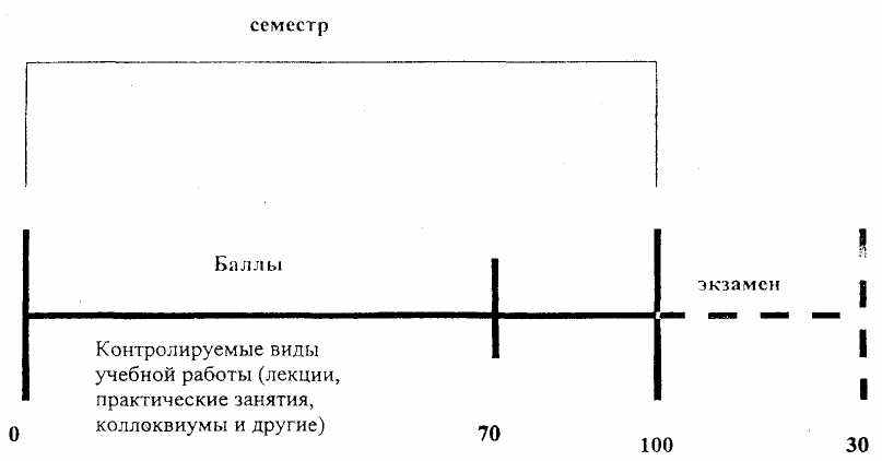 По дисциплинам учебного плана, по которым формой итогового контроля установлен экзамен, к набранной за семестр сумме баллов добавляется при сдаче экзамена на «удовлетворительно» - 10 баллов, на «хорошо» - 20 баллов, на «отлично» - 30 баллов. Итоговая экзаменационная оценка, выставляемая в зачетную книжку, составляет: «отлично» при набранных от 116 до 130 баллов, «хорошо» - при набранных от 96 до 115 баллов, «удовлетворительно» - при набранных от 80 до 95 баллов.