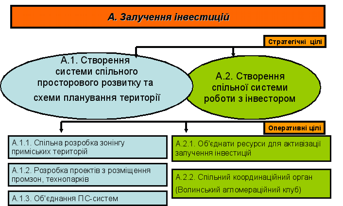 Рис. 7. Блок – схема цілей Критичного питання А. Залучення інвестицій