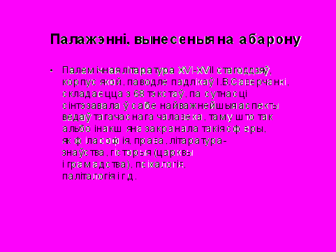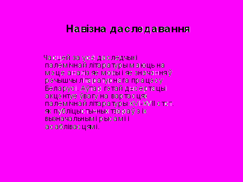 Асаблівую ўвагу прыцягвае публіцыстычны дыскурс XVI–XVII стагоддзяў (палемічная літаратура як творы перыяду зараджэння публіцыстыкі), таму што на сучасным этапе развіцця літаратуры рэзка ўзрастае ўласцівая прыгожаму пісьменству функцыя пазнання свету.