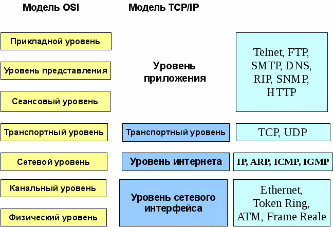 Рис.5.1. Сравнение спротокола TCP/IP и сетевой модели OSI.