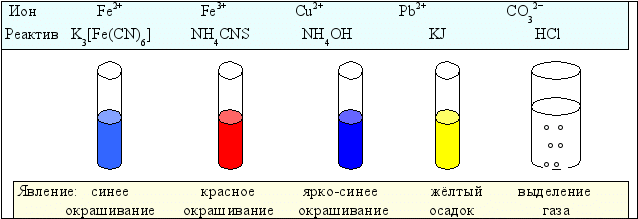 Рис. 6.2. Вид качественных реакций на некоторые ионы