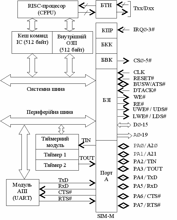 Рисунок 14.4 – Структура інтегрованого мікропроцесора MCF5204