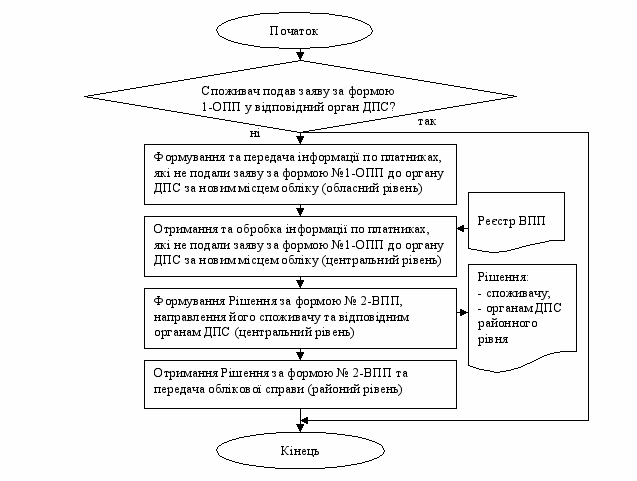 Рис. 1. Блок-схема процесу „Прийняття рішення про зміну основного місця обліку та переведення великих платників на облік у спеціалізовані чи інші органи ДПС”