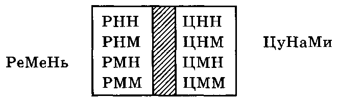 • для установления связей мнемоника делит весь запоминаемый материал на отдельные слова. Такие слова делятся на 3 класса: отдельные слова (отдельные названия, имена, термины и т.п.), словавоспоминания (ключевые слова текстов), слова-числа.