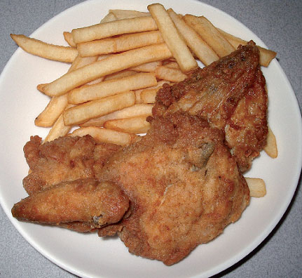 Перед подачей на стол их можно украсить зеленью, кружочками лука и т. д. Хорошо бы еще подать к ним жареную картошку – не жалкие, наспех приготовленные из полуфабриката чипсы, а именно жаренную на подсолнечном масле картошку, хрустящая корочка которой, смешиваясь во рту с сочным, хорошо пропеченным куриным мясом, создает совершено неповторимую гармонию вкуса.