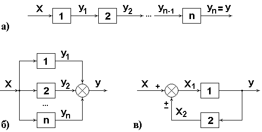 Рис.4.1. Типовые соединения звеньев: а) последовательное;