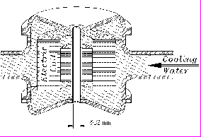 Биттеровский соленоид. Слева: фрагмент обмотки соленоида, справа: схема его охлаждения.