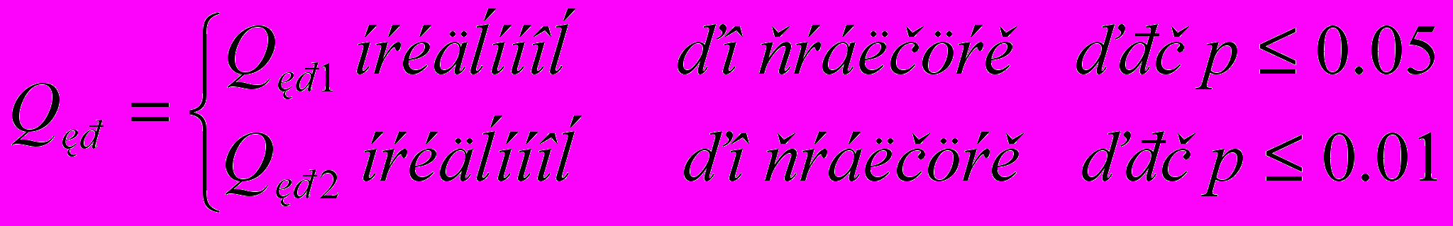 Подсчитанное значение Q по какому либо статистическому методу должно обязательно попасть в одну из этих зон.