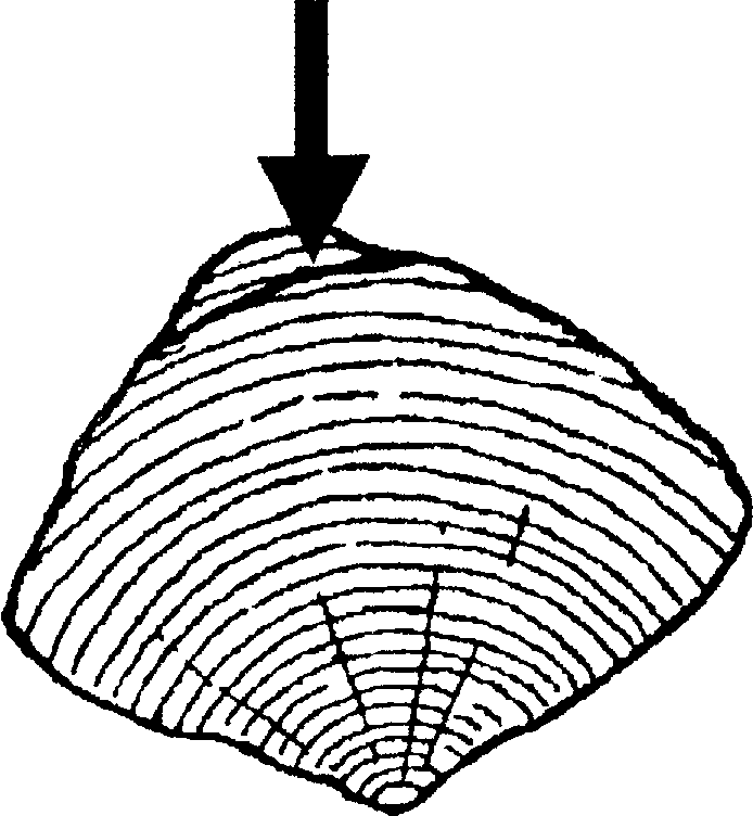В районе Мандсли, в горизонте Кромерского леса, С. А. Ноткатт (S. A. Notcutt) отыскал кусок отпиленного дерева. Большая часть геологических слоев Мандсли имеет возраст от 400 до 500 тысяч лет. Во время обсуждения вопроса об отпиленном дереве Мойр заявил следующее: «Тонкий конец среза мог получиться в результате пиления острым кремнем. Кажется, что в одной из точек линия пиления была подкоррек-тирована (рис. 2.5). Такое нередко происходит, когда древесину пилят при помощи современной стальной пилы». Далее Мойр отметил: